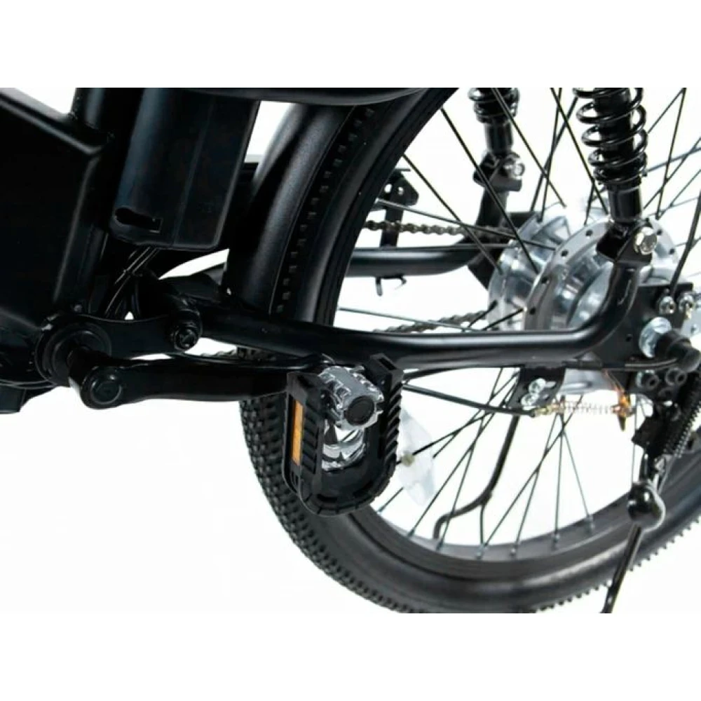 Стальная цельная конструкция рамы считается сравнительно легкой. При общей массе 33 кг общая грузоподъемность составляет 150 кг. Модель оснащена современным электромотором на 500 Вт. При емкости АКБ 13,6А*ч максимальная скорость составляет 45 км/час, а максимальный запас хода 70 км. Аккумулятор размещен в специальном блоке за подседельной частью в специальном блоке, защищающим батарею т воздействия внешних факторов.