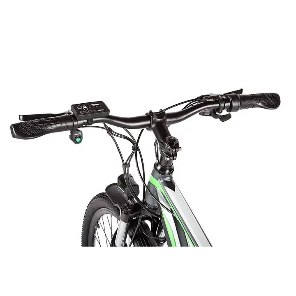 Велогибрид Eltreco XT 750 представляет собой доработанную и улучшенную версию модели ХТ 700. Производители оснастили велосипед  более емким аккумулятором, который обеспечивает запас хода до 50 километров на одном заряде батареи. Расположен аккумулятор под рамой и легко снимается для подзарядки в домашних условиях или офисе. Компактный, но мощный двигатель позволяет развивать скорость до 35 км/час. Такие показатели гарантируют комфортное и мобильное передвижение по городу в течение всего дня. В темное время суток безопасность поездки обеспечивает яркая передняя фара, которая уверенно освещает путь и делает велогибрид заметным для других участников движения. Надежные тормозные колодки с износостойким керамическим покрытием способны быстро остановить транспортное средство даже в экстренной ситуации. Рама выполнена из легкого и прочного алюминиевого сплава и выдерживает нагрузку до 100 килограммов. Пользователи оценят эргономичное сиденье из искусственной кожи и удобные ручки руля, обеспечивающие комфортное положение рук. Велогибрид Eltreco XT 750 отличается стильным и современным дизайном, а его эксплуатационные характеристики позволяют одинаково эффективно использовать его как для поездок по городу, так и для увлекательных загородных велопрогулок.